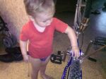 Так как Слава любит технику,то старается везде подкрутить,повертеть.А тут велосипед.Можно покрутить колесо,подкрутить, под вертеть. И самое главное-братику помочь.Вдвоем то интересней и быстрей.