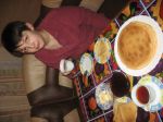 Начитались на форуме рецептов блинов и тоже пошли печь! Мои блиноеды обычно просят их раз в три дня (когда я дома, если на работе-по выходным), и Руслан тоже научился печь на случай форс-мажора.Теперь осталось Олега научить-и полный порядок. Дали кусочек Егорке-вроде пед. прикорма. Пожевал благосклонно.
