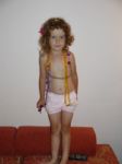 Обожает насекомых, узнает и на картинках и в живую, майский жук - любимчик. Смотрит "Трасформеров" мульт, называет его "Автоботы". Появился приятель Егор, новые соседи переехали, за компанию готова на многое, но нас еще слушается, если отлучаем от улицы, до слез, такая жалкая, хочется разрешить все. Все еще рисует на стенах. Велосипед еще на четырех колесиках.