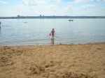 Ура! Уже целая неделя у нас в Ижевсе жаркое лето. Вчера выбрались на городской пляж. В Ижевске есть большой пруд рядом с парком. Пляж не очень чистый, отдыхающие сами бросают свой мусор как попало. Да и с водой в последние годы проблема, очень быстро зацветают сине-зеленые водоросли. Но как же приятно в жаркий денек пробежаться по водичке, побрызгаться и даже окунуться! Вот и мы с Васей решились. Вася хоть и боится далеко заходить в воду, а уходить от воды не хочет. Загорела спинка и ручки, а у меня так вообще плечи сгорели пока я за дитем бегала. Вообщем, удовольствия получили море! Теперь Вася меня спрашивает целый день - Когда пойдем на пляж? Кого мы с собой позовем?