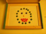 Получили запоздалые подарки на Васькин День рождения. Моя двоюродная сестра Инга подарила Васе двустороннюю доску - с одной стороны металлическая для магнитов и можно рисовать маркером, с другой можно рисовать мелом. А Васина крестная подарила обучающую игрушку-азбуку, которую можно носить с собой.