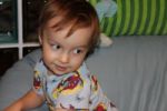 Сегодня папа выложил пластиковыми буквами слово "МАМА" и, шутки ради, спросил:"Что написано?" Денис ответил правильно. Затем настал черёд слову "ПАПА", и тоже последовал положительный результат. Чтобы убедиться, что это всего лишь случайность, было составлено слово "ДЕНИС". Но и тут последовал правильный ответ! Ура! Мы чуть-чуть научились читать!!!