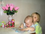 Купила детям новогодние книжки со стихами о деде морозе, снеговике, на зимнюю тематику. Они у меня разглядывали картинки, расспрашивали и рассказывали, что там нарисовано. Машутка даже сама пыталась читать книжку. Водила по картинкам пальчиком и громко лепетала на своём языке. Смешно выглядело это со стороны.