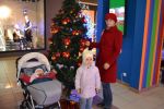 Настенька увидела "Деда Мороза"- так она его назвала. Крутилась возле него, крутилась. Пришлось сфотографироваться. Но потом она резко переключилась на подарочек в коробке. Интерес к Морозу пропал!