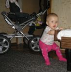 Машенька сама научилась подниматься на ножках и стоять, держась ручками за что-нибудь. А потом садиться на попу и снова вставать, как солдатик. Такая вот у нас зарядка для мышц ног!