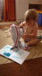 С утра намазали ватной палочкой с зелёнкой красные пятнышки от укусов комаров на Лизочке с приговорами: "Вот нарисуем сейчас медвежонка, зайчонка..." Ребёнок выдержал данную процедуру без слёз, а чтоб в следующий раз не боялась, дала ей самой такую же палочку. Но она после двух пятнышек начала себя изрисовывать, я поплатилась за доверие ребёнку.))))) Я подсунула ей тетрадку - пусть рисует, она меня попросила нарисовать муку, а-а-а-а (овечку), папу, маму, няню, лялю, всё было нарисовано. Но... после этого мамаша оставила ребёночка на произвол судьбы, занявшись добавлением статей в клуб, и... получила своё: была найдена баночка с зелёнкой, накапала Лиза на ковре, на себе, на простыни... Вот до чего доводит самолечение и азарт crazy-mamой))))))))))))
