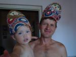 Эх, и помощница у нас Лизонька. Что ни делаешь, она тут как тут. Решила помидорчики засолить, дочка прибежала мне помогать: отбирала каждый помидорчик и в банку кидала (что уж с ними будет?...) Пока я засолкой занималась, мои домашние забаву нашли: Лизонька натянула колпак для чайника и ходила в нём по дому, а оказалось, что второй колпак папе достался. Так мне и помогать пришла)))))))))