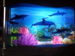 Толя никак не мог привезти ночную лампу, всё забывал её в деревне. А тут привёз , включил её, поплыли рыбки(жаль, музыки нет)... Лизонька тут как тут, несколько минут стояла, смотрела, как двигаются рыбки. Зрелище, конечно же, приятное
