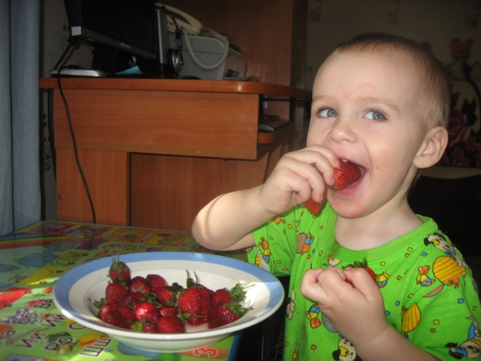 С каким смаком Коля поедает викторию.