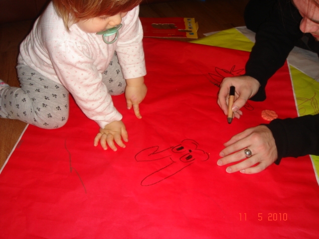 Пришел Сашенька с работы, а Вика его уже встречает. Разложила плакатные листы на полу и протягивает братику карандаш :" Рисуй". Вот так и творили вместе два моих художника ! Рисовали, конечно, по актуальной на сегодня теме : НУ, ЗАЯСЬ, ПАПАДИ !"