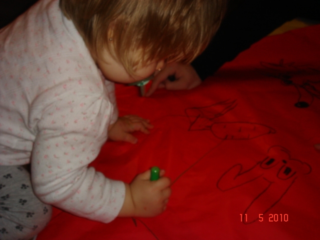 Пришел Сашенька с работы, а Вика его уже встречает. Разложила плакатные листы на полу и протягивает братику карандаш :" Рисуй". Вот так и творили вместе два моих художника ! Рисовали, конечно, по актуальной на сегодня теме : НУ, ЗАЯСЬ, ПАПАДИ !"