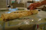 Записывайте, девочки, если понравилась закусочка: лаваш, на наго намазываем масло сливочное, затем сыр с чесноком, заправленный майонезом, а сверху - икра, можно и икорную закуску. Мы взяли разную икру: красную и чёрную, получилась одна сторона светлая, другая - тёмная. Ну мы так и назвали "ДЕНЬ И НОЧЬ". Затем завернули рулетиком, разрезали кусочками по 2-3 см, разложили на тарелочки... Такая сочная вещь получилась. Гости пальчики облизывали)))
