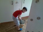 Влад у нас любитель домашних дел,но по настроению. Когда была беременна Славуней,тяжеловато было мыть полы,так мое солнышко сам мыл. Конечно не так как я,но все же помощь мне. А папе помогал в оклейке обоев.