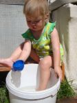 Зато сколько радости доставляет Лизе купаться в тазике, в ведёрке - всё равно, только бы было прохладно!