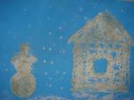 Приступили с Викой к выполнению " зимней" работы. Вместо снега использовали рис и муку. Работали с удовольствием. " Много снега?"- спрашиваю. " Да!" Только вот как объяснить ребенку, что такое снег? Вечером смотрим мультфильм про рождество. Красота, морозец, наряженные ёлочки и целые сугробы снега. Я замераю в благоговении. Вика подбегает к экрану и радостно кричит :" Мам! Смотри, сколько риса!"