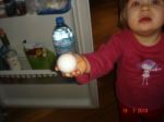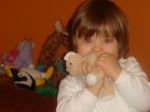 Сегодня играем с Викой, тут у неё любовь проснулась и давай всех обнимать и целовать. Ну, конечно же, добровольно - принудительно ! Сначала меня " залюбила", а потом на Ричи переключилась и давай его прижимать- обнимать. Я говорю :" Ты по-тихоньку обнимай! Не так сильно ! А то , смотри, мама плачет и Ричи тоже плачет!" Она сорвалась с места и к холодильнику ! Достала там яйцо и нам протягивает :" Не пачь, на!!!" Наверное, про Курочку Рябу вспомнила : Дед плачет, Баба плачет, а Курочка кудахчет...